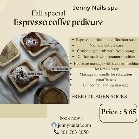 About Us Welcome to Jenny Nails Spa, your go-to destination for exceptional nail care and pampering in the heart of American Fork, Utah. Conveniently located at 456 E State Street, American Fork, UT 84003, our salon offers a relaxing atmosphere where beauty and comfort come together. At Jenny Nails Spa, we believe that self-care is essential, and our mission is to help you look and feel your best. Whether you're here for a quick polish refresh or a luxurious spa day, our team of skilled technicians is dedicated to providing high-quality services tailored to your needs. From stunning manicures and pedicures to indulgent spa treatments, we use only the finest products to ensure your satisfaction and well-being. Hygiene and customer care are our top priorities, and we go above and beyond to create a safe and enjoyable experience for every guest. Discover the difference at Jenny Nails Spa—where beauty meets relaxation. Visit us today and let us bring a little sparkle to your day! 📍 Jenny Nails Spa 456 E State Street American Fork, UT 84003 We can’t wait to welcome you!